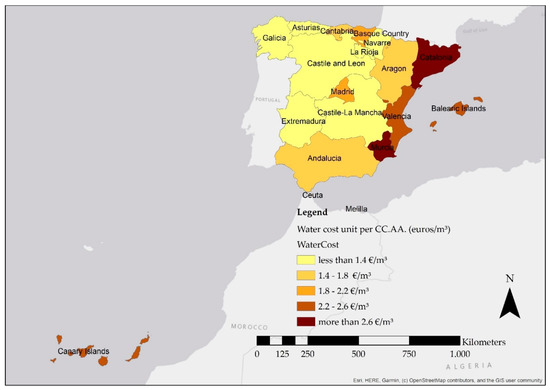 Unit Cost of Water in 2016 by Autonomous Communities. Source: INE.