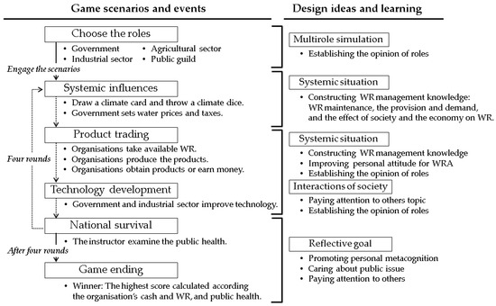- Cheng, P.H.; Yeh, T.K.; Tsai, J.C.; Lin, C.R.; Chang, C.Y. Development of an issue-situation-based board game: A systemic learning environment for water resource adaptation education. Sustainability 2019, 11, 1341. [Google Scholar] [CrossRef]