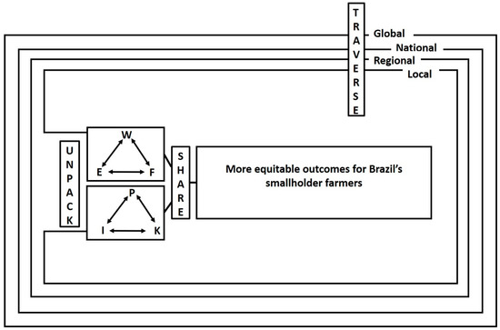 The WEF and PIK nexuses, and their inherent inter- and intra-relationships, are not static, but continue changing and evolving over time. The challenge for Brazil is to achieve a sustainable, socially-just and equitable future, particularly for smallholder farmers who until now have been disfavoured by the prevailing PIK configuration, while the large agribusinesses have accumulated the gains. In this sense, it is vital to address the PIK disconnection through improved consideration of recognition and participation justice supported by improved knowledge across scales and stakeholder groups.
