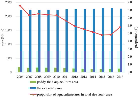 - Integrated intensification of rice paddy fields. The co-culture of rice and aquatic animals in rice fields increases food production via efficient utilization of land and water resources [38]. Beyond the RFCF models mentioned in this study, more intensive and innovative models such as "double-stubble duck with one-season rice” and "double- and triple-stubble crayfish with one-season rice” are also promoted in actual practice, conforming to the trend towards sustainable intensive agriculture in densely populated areas. In view of the dual limitations of labor force and land/water resources in Jiangsu, RFCF should focus on judicious utilization of the existing resources ecologically and intensively rather than the expansion of the rice paddy aquaculture area. Moreover, the operation standards of RFCF should be further regulated, while the area scale and space scope of RFCF should be clearly stated.