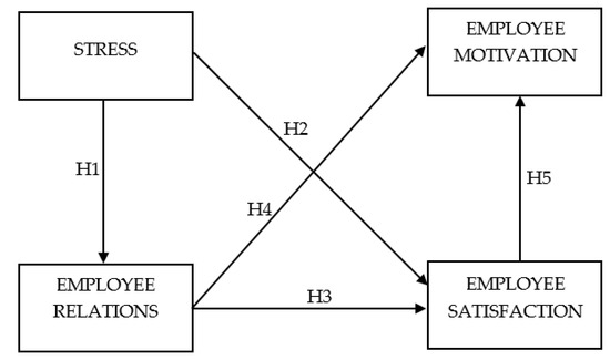 Where employees are stressed, negative results can show in terms of the communication and relationships among them. Those who are stressed can be angry and irritable, which—together with low levels of morale, satisfaction, and motivation—can have negative impacts on team dynamics, communication within the company, and internal relationships [14,15]. Therefore, the following hypothesis is proposed: