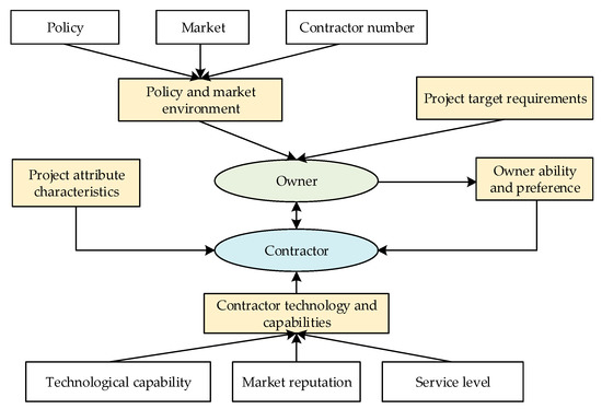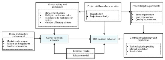 The owner is the core decision-maker in the decision-making of PDS [10]. In addition to considering the preferences themselves, the owners will also consider determinants such as the policy and market environment, project target requirements and project attribute characteristics. These determinants interact with the decision-making process of the owner and constitute the decision-making mechanism of the PDS, as shown in Figure 1.