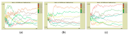 The experimental method: when examining the influences of a project’s attribute characteristics, owner ability and preference, and contractor technology and capabilities on the selection of the PDS, only the parameter values of a certain scenario are adjusted, and the parameters of the other definitions are fixed. This experiment used the main program module in the simulation model to implement the initialization, parameter input, visual output and system operation. The global variables and assignment of the entire agents were set. The total number of owners was 5, the total number of contractors was 150, the maximum number of iterations in the simulation experiment was 900 and the project attributes characteristics were randomly generated after each simulation. To ensure that all experiments maintained the same global variables, the main global variables of different definitions in the simulation system were set as shown in Table 6.