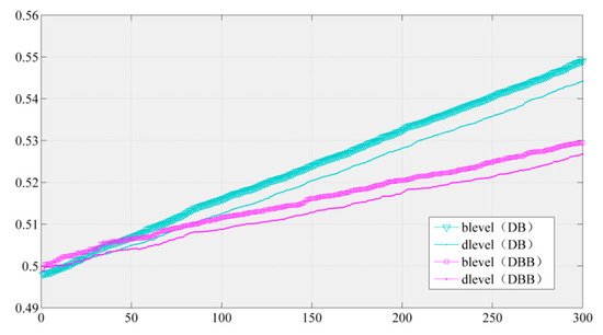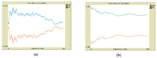 In the experiment, we fixed the other parameters as being unchanged. Scenario 1: DBB was dominant, set pc = 80%, pz = 20%. Situation 2: DB was dominant, set pc = 20%, pz = 80%. The experiment controlled the market advantage of the DB and DBB, and the other fixed parameters and results are shown in Table 11 and Figure 13.