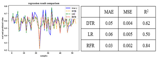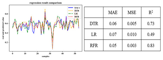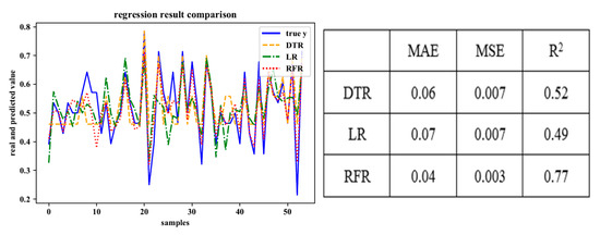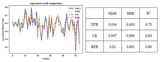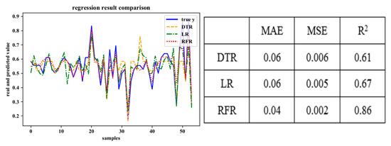 We refer to the three indicators listed in [28], mean absolute error (MAE), mean square error (MSE), and determination coefficient (R2), and use them as evaluation indicators of fitting results. The first two belong to the prediction error index, which is expected to have a smaller value, while R2 belongs to the prediction correlation index which is expected to have a larger value. Finally, we choose RFR as the prediction model to complete the personality traits evaluation of the remaining users.