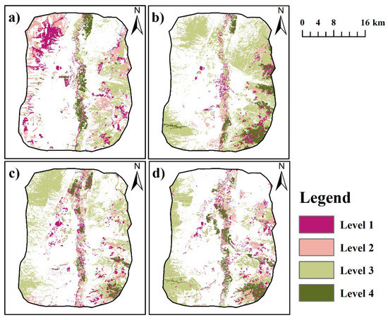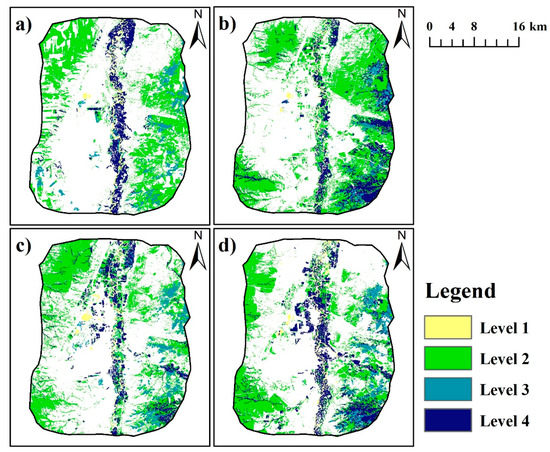 The Habitat Quality levels in 1999 (a), 2006 (b), 2011 (c), and 2017 (d).