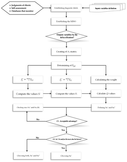 Despite this, a system of diffuse inference, recognized by [59], can help interpret and quantify a necessary dependent variable for the qualities of the study object cited. According to [17], IFS provides the resources for the comparison of input variables that result in a matrix, which it contributes to the VIKOR application as a combined method. Therefore, in this study, the strategy that IFS be a modeling tool is adopted to define an A(i,j) matrix and the supplier performance levels are determined using the VIKOR method.