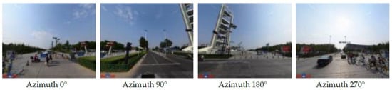 In total, a set of 30,000 points was randomly selected in the study area, and the latitude and longitude coordinates of each point were extracted. Then, the street view photos were downloaded by using relevant Baidu street view map APIs (Application Programming Interface). The acquisition parameters of the street view photos are as follows: fovy (Field Of View Y-axis): 90; quality (picture quality): 95; heading (twist angle): initial value is 3.579°; add 90° each time; pitch (pitch angle): 0°; height: 512; and width: 1024. The authors downloaded a total of 97,451 street view photos. Typical street view photos are shown in Figure 3.