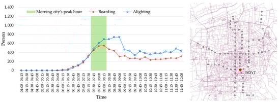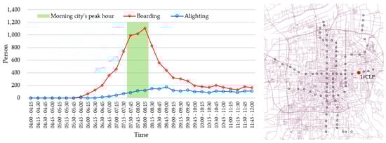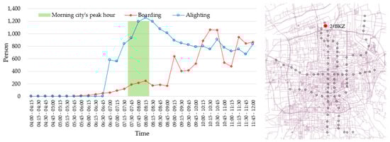 Few studies have been conducted on passenger flow during a station’s peak hour. Shen [30] proposed the concept of two types of station ridership during peak hours, namely the ridership during the city’s peak hour and the ridership during the station’s peak hour; however, the study provided no research data. Others have found that a station’s peak hour is related to the station’s land use [31,32], location, and travel purposes [8].