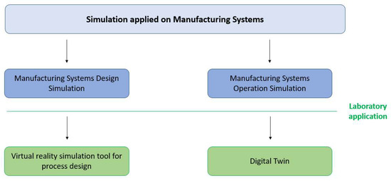 - A simulation model belonging to the manufacturing system design category (i.e., a virtual reality (VR)-based disassembly process configuration model);