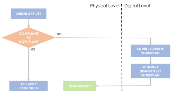 The first model focuses on facilities design, an important factor influencing the general performance of a manufacturing system. Facility layout design deals with the allocation of machines in a plant and can have a large impact on the effectiveness and efficiency of disassembly processes, increasing the ability to recover resources, and enabling their usage in new product value chains. An effective layout can reduce manufacturing costs and improve the system’s performance. Discrete event simulation is an appropriate tool for evaluating the current layout, thus showing potential areas of improvement by evaluating different layout alternatives [54,55]. The second model focuses on the real-time control of a manufacturing system. This way, simulation is used as a tool for monitoring what happens in the system during the disassembly process, trying to optimize energy consumption and valuable materials recovery. Here, the simulation is exploited for easing real-time decision making. However, the use of simulation as a basis for a real-time system control is still a hard task due to response time, data collection, and aggregation issues, making it an emerging field of research within manufacturing systems [55,56,57].