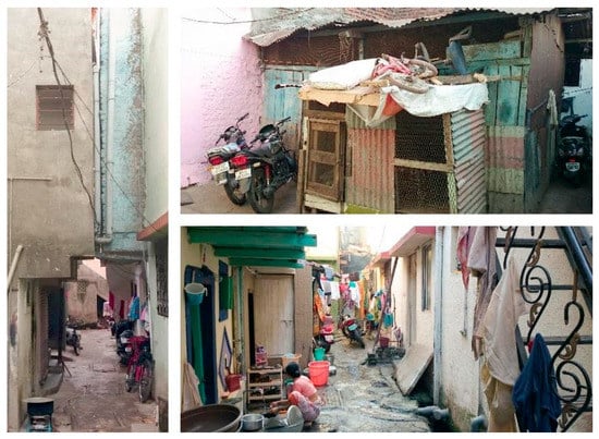 Over the last 50 years, different strategies have been adopted globally, ranging from denial, ignorance and demolition to tolerance, displacement and upgrading. However, the challenge of informal settlements cannot be simply tackled through forced eviction, demolition or displacement. With few exceptions that are located in hazard-prone areas, most of the existing settlements can be upgraded incrementally and on the same site. Such upgrading processes then rely on a sophisticated understanding of the existing morphologies, adaptations, and qualities of these settlements [,,,]. An elaborate understanding of urban morphology is crucial for better design interventions []. It is of great significance as certain practices of upgrading appear to be incompatible with adaptive processes of informal urbanism []. This paper aims to not evaluate certain upgrading projects or prescribe some definite solutions, but rather to explore the fluidity of space in informal settlements drawing on a case study of an informal settlement in Pune, India. It is important to reach a better understanding of the ways in which informal settlements work in terms of their morphologies and incremental adaptations before jumping into some prescriptive conclusions about how these settlements can be most effectively upgraded.