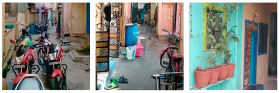 I also pointed to how street life and everyday activities are linked to the ways in which private territories were connected to the public realm. The relations between building density, functional mix, and access network come together in urban interfaces as everyday life spills out into the laneways at the ground level. The public/private interface plays a key role as it has the capacity to enable and constrain both social and economic exchange at the ground level where publicity and privacy intersect. The study area incorporated a mix of public/private interfaces. Impermeable interfaces were mostly located along the minor laneways intersecting the main laneways. Semi-public/private spaces between inside and outside are particularly useful in informal settlements as they accommodate a range of loose parts and activities [,]. However, they often appropriate a part of public space permanently or occupy an area that could have been potentially enclosed to extend private space and the built-up area.