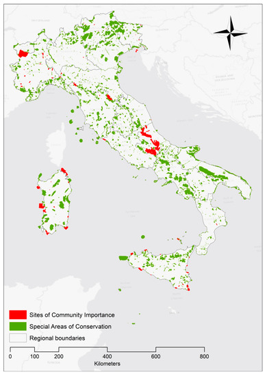 Italy is selected as a case study because the SAC designation process has almost been completed, although with great delay with respect to the six-year deadline mandated by the Habitats Directive; such delay in October 2015 led to a formal notice (infringement procedure no. 2015-2163) from the European Commission, and, in January 2019, to an additional formal notice because of the still unachieved compliance. Similar formal notices, concerning issues in SAC designation, were also issued to other member states, including Portugal (no. 2015-2002), Spain (no. 2015-2003), Ireland (no. 2015-2006), Greece (no. 2015-2260), Germany (no. 2015-2262), Bulgaria (no. 2018-2352), and Slovakia (no. 2019-2141); none of these infringement procedures has been closed so far [40], which signals a general difficulty in fully implementing the Natura 2000 network, and the Italian case can shed some light on such issues.