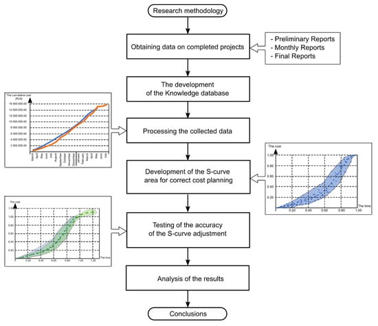 In order to solve the set task, an original method of planning the course of the S-curve for cumulative costs in construction projects was developed. The method was broken down in the form of a flowchart, therefore converted in methodological process. The proposed methodology consisting of the following 5 steps was developed: