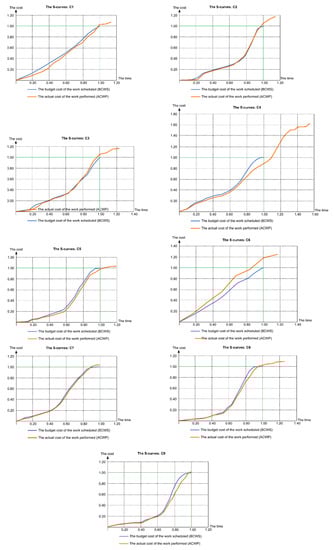 The classic Earned Value Method, due to the conducted research, is being expanded and constantly modified, e.g., Bayesian networks were introduced to the basic method in order to include uncertainty and dependences between events [25]. The method extension was also achieved by the introduction of a new parameter—the Schedule Forecast Indicator (SFI). The introduced parameter aims to support decision-makers in the decision-making process in the case of changes occurring in the project at various stages [26]. In the conducted research concerning the extension of Earned Value Method, attempts were made to take into account the impact of unplanned time and cost deviations on the financial liquidity of a construction project. For this purpose, the three following groups of models were analyzed: scenarios in which the planned budget was exceeded, while at the same time, maintaining the planned duration; scenarios in which it was assumed that the planned duration was exceeded, while maintaining the planned costs; and scenarios in which it was assumed that the planned costs and the duration of the investment task would be exceeded simultaneously [27].