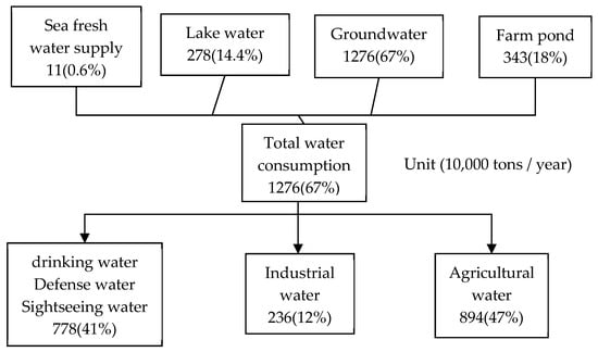 | Use | Daily water consumption, the proportion of industrial water and agricultural water. |