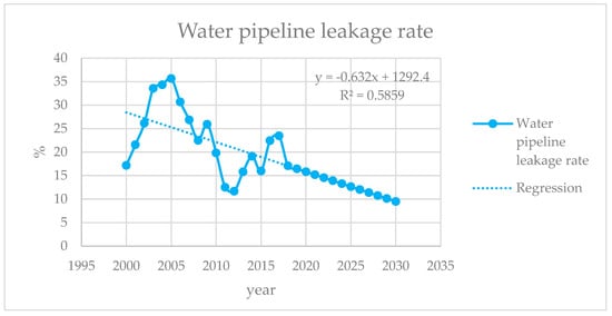 - Water pipeline leakage rate: According to estimations based on the WPI data, the water pipeline leakage rate in Kinmen will be reduced to approximately 10.42% by 2030 (Figure 14).