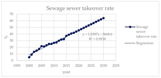 - Sewage sewer takeover rate: According to estimations based on the WPI data, the sewage sewer takeover rate in Kinmen will be approximately 63.9% by 2030 (Figure 15).