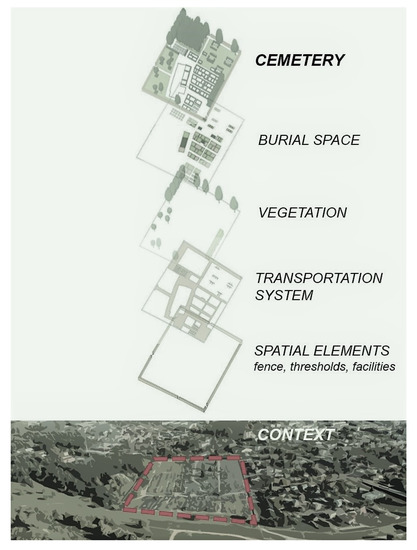 Cemeteries and cities are interlinked. Historical data support that the social functions of cemeteries have played an important role in the formation and development of early cities [11,12,13,14]. Cemeteries constitute some of the oldest and largest green and open spaces in the urban landscape [15,16,17]. Researchers agree that the cemetery is an important element of the urban infrastructure system [18,19,20,21,22,23,24,25].