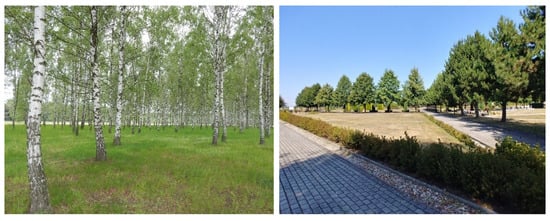Vegetation. Pro-environmental activities, especially those regarding vegetation, are extended in time. In order to make cemeteries a reservoir of biodiversity and to enrich the natural urban environment, it is necessary to conduct, at least, frame plantings of greenery in the period preceding the establishment of the cemetery (about 5 to 10 years), like, e.g., in Antoninów, Strzelce Opolskie (Figure 7).