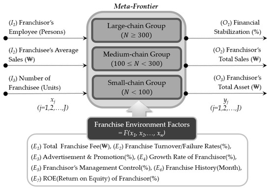 Essentially, conventional DEA models rely primarily on the assumption that all DMUs have a set of DMUs sharing homogeneous technology. However, significant operating size disparities such as resource limitation, operational strategies, and management level in Korean coffee shop franchises provide a realistic basis for studying the franchisor’s operation efficiency in the presence of heterogeneity, which can be implemented by conducting a metafrontier analysis [22,25]. In particular, Korean coffee shop franchisors can be classified into three groups according to their number of franchisees , such as large coffee shop chains , medium coffee shop chains , and small coffee shop chains . Although these coffee shop franchisees have the homogenous characteristics of providing coffee and beverage services to customers, the franchisor’s operational policies appear to be somewhat heterogeneous, depending on the number of franchisees managed by individual franchisors [1,18,19,20,27,28].