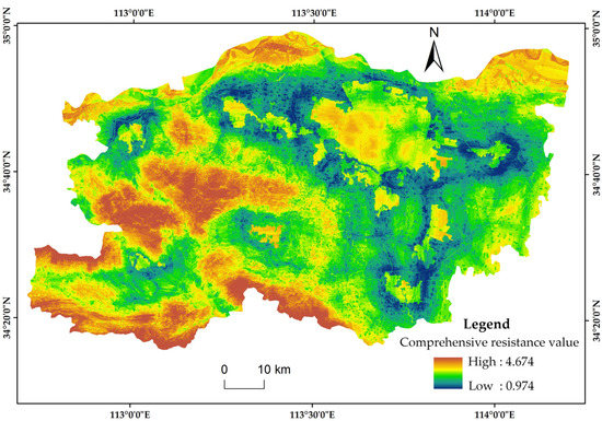 Comprehensive resistance values of rural residential areas in Zhengzhou.