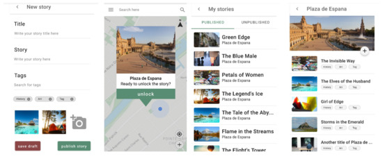 A good example is a mobile application made for Castello, a neighborhood in Cagliari, Italy. The goal of the app is to guide tourists around the neighborhood, tell them which cultural heritage sites are worth visiting and if there is enough time to do so. This is done using a simple query based on the user’s demographics, such as age and physical ability. The app presents the user a list of site recommendations to visit according to thematic and geographic proximity [54]. These lists are connected to multiple “points of interest” (POIs) and “smart walks”. These smart walks are routes to a given place with several things to see on the way there. The app calculates the time to get there and also places the POI on a ‘smart walk’, or route, with more POIs. Once a user has arrived at a POI, the app presents information, guidance, and info obtained about it [51]. The user walks from a start point to a finish point, with several POIs on the way. This also allows for the intangible cultural heritage that is linked to the place to be disseminated [54]. After a visit, the user can rate each visited POI in terms of the quality of service offered. Users can also comment, tag, upload images, add folksonomies (certain taxonomies about a physical place used by the community) and new knowledge about the POI, which might be a landmark [54]. This way every time a POI is visited, more intangible information about it will become available for the next visitor. Another user can decide to take this or another route based on this information. All of this feedback can then be shared on social media, thus reaching more potential visitors. This system can be used by moderators and people that just use the app to find out more about the city. The moderators can improve the application by using feedback from general users and these users can, in turn, enrich the information originally posted by the moderators [51]. This method ensures the broad participation and sharing of information between all actors and creates a balance between material cultural heritage and local wisdom [55].