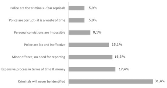 Reasons stated from the residents who did not claim to the police a house robbery (Elaborated by the Authors, from the data of the source [40]).