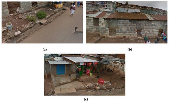 From 1912, the Kenyan government informally conceded a land plot—Kibera—to Nubian soldiers, as a compensation for their service in the British army during the World Wars. With this agreement, soldiers had rights regarding the ownership of buildings but not regarding the land, causing extreme insecurity of tenure, especially after the 1950s when rural-urban migrations increased and Kibera expanded [43]. Located in the south-west of Nairobi city along the railway line and with an extension of 2.56 km2, today Kibera is one of the biggest informal settlements in Eastern Africa. With a density of about 90,000–100,000 inhab/km2 [44,45], the settlement has limited public spaces, the street network is irregular, narrow and with fragmented lighting infrastructure, which reduce social interaction, visibility and safety. The overall physical components, the maintenance and the cleaning conditions are precarious.