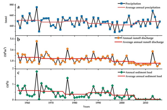 A watershed is a relatively independent and naturally formed ecosystem and also a significant place for human habitation and socio-economic development [1]. In recent decades, the impact of climate change and human activities on the global ecological environment has become more and more obvious. In particular, it has affected the spatial and temporal distribution of surface water resources and various factors in the water cycle (runoff and sediment load), which has led to the worldwide concern. About 50% of the world’s rivers show a significant decline in river sediment load [2,3,4,5,6], affecting the structure, processes, and functions of societies and ecosystems [7,8,9]. The decrease of sediment load is due to the change of underlying surface caused by human activities, which leads to significant changes in sediment production mechanisms and sediment transport processes [10]. Human activities are restricted by policies and socio-economic factors. Therefore, understanding and balancing the relationship between policies, socio-economic factors, and sediment load is critical to the sustainable management of the basin.