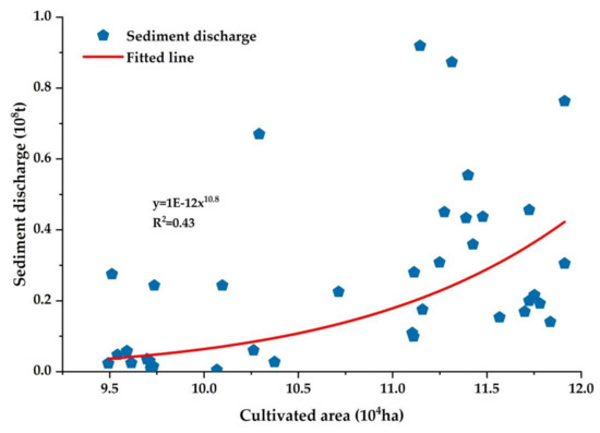 Relationship between cultivated area and annual sediment discharge in tons/year.