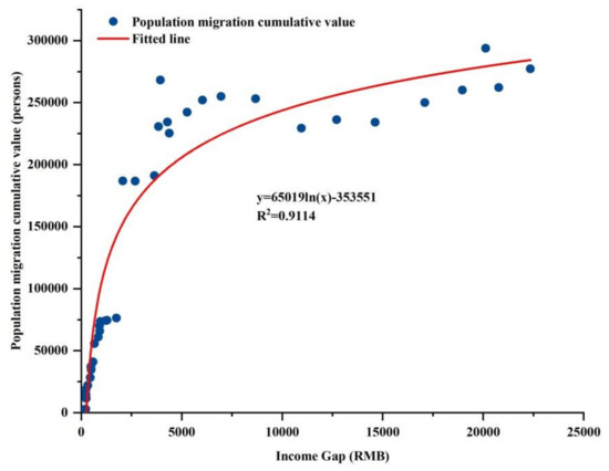 Relationship between cumulative per capita income gap with the cumulative population migration.