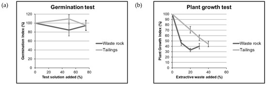 Germination Index (a) I and Plant Growth Index (b) using waste rock and tailings from Gorno.