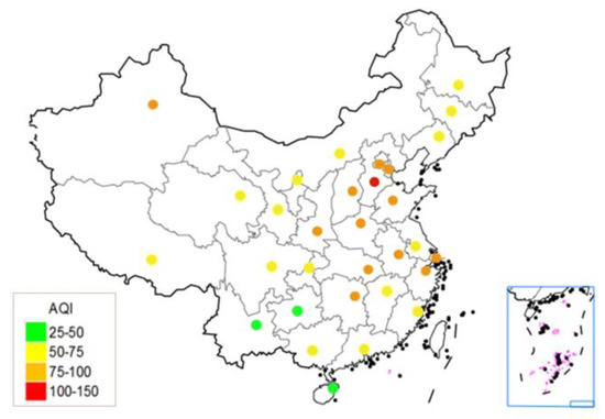 - Liu, H.J.; Du, G.J. Spatial pattern and distribution of air pollution in Chinese cities: An empirical study based on 161 AQI and 6 sub-pollutants. Econ. Geogr. 2016, 36, 33–38. [Google Scholar]