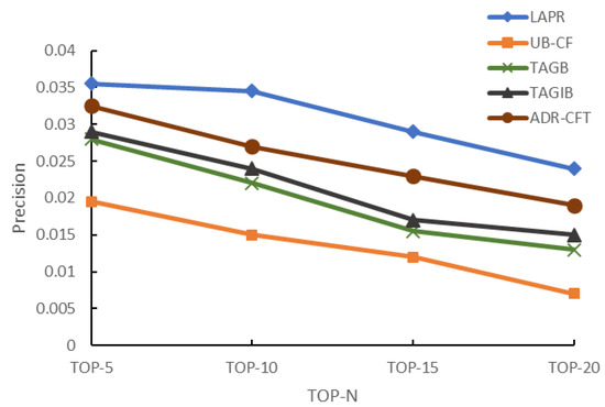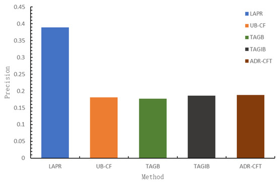 Because of the design of the single content task, the recommendation process is equivalent to delivering a list of items with identical contents and different layouts to users, with the contents matching the traditional interests of the users. The result will reflect the qualities of recommendations with or without the utilization of information of aesthetic preference for layouts made by LAPR and the classic recommendation methods, respectively. Recommendation precision is measured to verify the quality difference. The results are as follows: