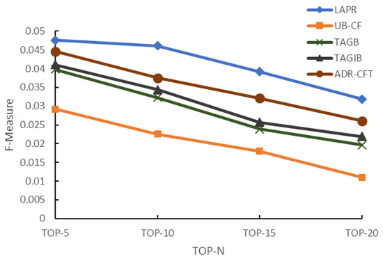 Because rating is not involved in any of the logics and experiment design processes of LAPR, TOP-N, the recommendation task, is a reasonable choice under this circumstance. We chose Recall, Precision, and F-Measure [91,92,97] to evaluate the quality of recommendation results generated by each recommendation method. The definitions of the three metrics and the different goals for which they are testing across different experiment tasks are listed in Figure 6.