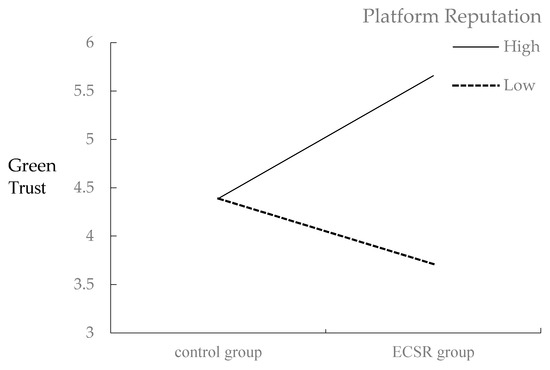 The purpose of Experiment 2 was to test the moderating effect. This experiment is utilized a 2 (green information: EKPR, ECSR) × 2 (RPR: high, low) between-group design to test the moderating effect of RPR. This experiment puts the platform reputation stimuli at the forefront to avoid the platform reputation evaluation being affected by the company’s ECSR information. In addition, scoring behavior as a behavioral commitment helps to strengthen the evaluation of the platform’s reputation.