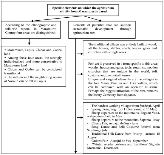 - The Maramures region’s representative elements for agritourism are numerous traditions, numerous rural resources (see Figure 9), some known on international level, and moreover well-preserved gastronomic elements—these aspects being highlighted from the responses of interviewed owners of agritourism structures.