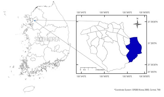 Natural disasters such as floods, earthquakes, etc., have been increasing all over the world due to climate changes and human activities. In South Korea, more than 50 percent of the annual precipitation falls during the summer season [1]. The irregular, sudden and heavy rainfall events frequently trigger disasters such as flood and landslides, resulting in serious damage that is increasing in scale every year. According to the IPCC (Intergovernmental Panel on Climate Change) [2], these problems will continue to increase; the rate of climate change is accelerating at an increasingly rapid pace [2]. The climatic projections indicated that future heavy rainfall would damage human lives, agriculture and economies [3]. Therefore, it is inevitable to identify areas susceptible to floods in order to minimize the loss of human lives and infrastructures [4]. Government agencies at both the local and national levels, therefore, need to implement active adaptation policies that support resilience in vulnerable communities. Since the IPCC report was published in 2014, the Korean government has adopted its climate change scenarios as a basis for its efforts to research specific ways to cope more effectively with disasters and conduct a national vulnerability analysis [5]. Recent events such as earthquakes in Pohang City and Gyeonju City and wildfires in Inje City have inflicted massive damage. Once a natural environment has been damaged, it is more likely to suffer further damage in the event of another disaster due to shifts in local environmental factors such as ground cover and the type of vegetation. Since the frequency of disasters is expected to increase in the next few decades, the importance of implementing adaptive measures in advance of the initial disaster that could prevent or mitigate its impact is clear.