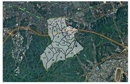 The results of the analysis with Arc GIS’s Hydro plug-in are presented in Figure 4. There are 17 catchment areas within the boundary of the Namhyeon-dong administrative region, four catchments that overlap with Bangbae-dong in Seocho-gu and one catchment that overlaps with Gwacheon in Gyeonggi Province, for a total of 22 catchment areas. Catchments with areas of less than 1 ha were combined with adjacent catchments for convenience. The catchments were divided into upper, middle and lower sections based on their elevation and the slope direction in the area. Given the problems revealed by the pre-site survey, the scope was limited to mountainous areas and catchments adjacent to residential areas.
