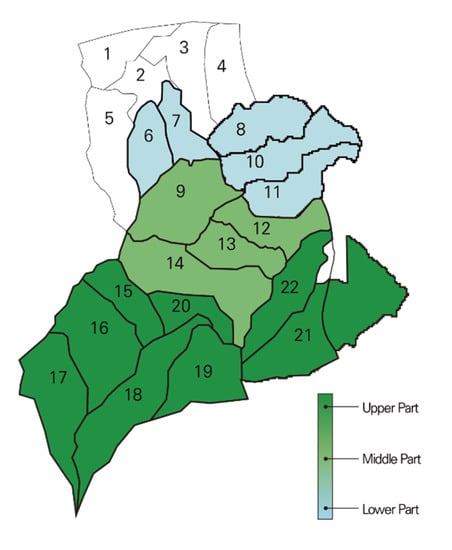 However, there are still lack of the detailed analyses for the effects and design guidelines for soil disaster prevention methods [15,16,17]. Most studies [6,8,13,14] related to soil loss in watersheds focused on small watersheds and sites and used their own factors or weighted values, which have relatively huge variations. This is because there were limited data for the topographical factors and the external factors that causing the occurrence. Therefore, it is necessary to investigate the major causes and look for alternatives options to minimize the soil disasters.