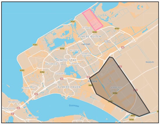 Established in 1975, Almere is the youngest city of The Netherlands. Despite its age, the city has rapidly developed into the seventh largest municipality of the Netherlands with over 200,000 inhabitants (compared to Amsterdam with over 850,000) and its growth seems to be continuing. It is expected that Almere will grow to more than 270,000 inhabitants in the year 2040 and will surpass 300,000 in 2050 [42]. It is the largest municipality in the province of Flevoland: an area of land reclaimed from the sea in the 1960s and designated for agricultural production [43]. Almere was designed as a polynuclear Garden City, inspired by the aforementioned Ebenezer Howard’s concept, with the idea of anchoring the relationship between its residents, nature and food production [44]. In practice however, this ideal was never achieved.