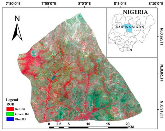 Location of the study area S2 RGB, left Kaduna State, Nigeria.