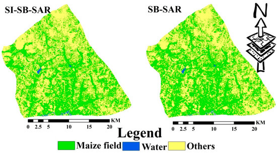However, as for the RF, the SB datasets had the highest OA, and for SVM, SI had the highest OA when compared with combined SAR for the maize class, which was in agreement with those results obtained by Pelletier et al. [68].