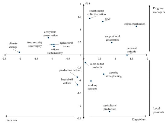 In the case of the ds variable, a positive sign illustrates an effect variable (driver), whereas a negative sign represents a receiver variable. In this sense, it is possible to show that peasants and program managers understood that the program was focused on enhancing adaptation to climate change, supporting ecosystem conservation and production factors, and trying to overcome agricultural barriers, safeguard the food security and sovereignty, guarantee the long-term sustainability of actions, and improve the livelihood of the local people. Worldwide, local governments and NGOs are working to respond to the existing emergency of food security and poverty challenge through these types of programs [19].