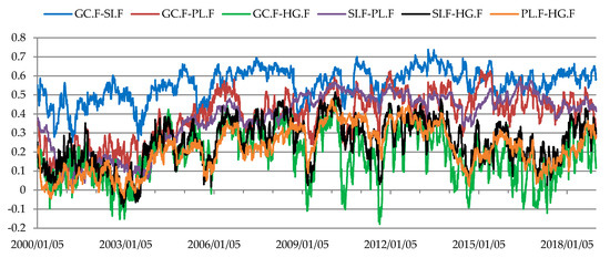 Commodity and financial markets are considerably affected by many factors, including the development of e-commerce, the establishment of exchange-traded funds (ETFs) and passively managed index funds focused on commodity, the inflow of capital from financial investors into commodity markets, and financial and economic crises. The above contributed to a greater integration of certain commodity markets and promoted convergence of commodity and financial markets [10,11,12]). Putnam [13] identified the determinants influencing dependencies between the rates of return for the S&P 500 index and for portfolios composed of commodity futures (relating to commodity sectors, i.e., energy, foods and fibers, grains and oilseeds, livestock and precious metals) in the period October 1992–October 2013. He concluded that the dynamic correlations between the stock index and the portfolios composed of futures in energy, grains and oilseeds, precious metals and (to a lesser extent) foods and fibers may be explained with increasing accuracy (especially after May 2003) using macroeconomic indices and financial market indices. Also, as noted by Zaremba [14], after 2003 the rates of return for commodity indices have become increasingly dependent upon the general economic condition. The increasingly strong dependencies between markets resulted in greater difficulties in managing investment portfolios. Hence, especially since the beginning of the financial crisis in the late 2007, both researchers and practitioners have focused on the dependence structure between commodity futures [15]. Correlation and volatility are central to many applied issues in finance, ranging from asset pricing, through asset allocation to risk management [16].