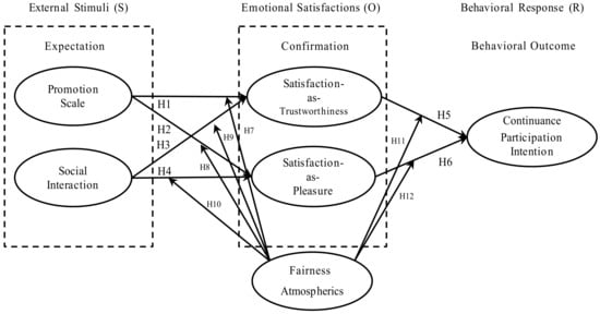In summary, trust and satisfaction have close connections [52,58,59] and are both triggered by the positive disconfirmation through the large promotion scale of SDSF. Therefore, this study proposed the following hypothesis: