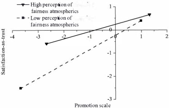 Fairness atmospherics moderate the relationship between promotion scale and participant satisfaction judgment as trust.