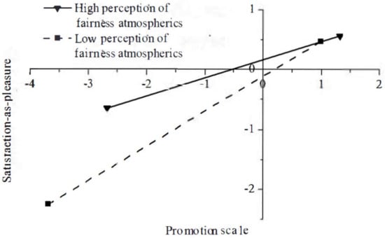 Fairness atmospherics moderate the relationship between promotion scale and participant satisfaction judgment as pleasure.